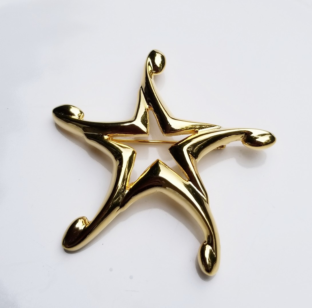 Very romantic shiny gold dancing star brooch. Open work. Vintage 1980s. In great condition.