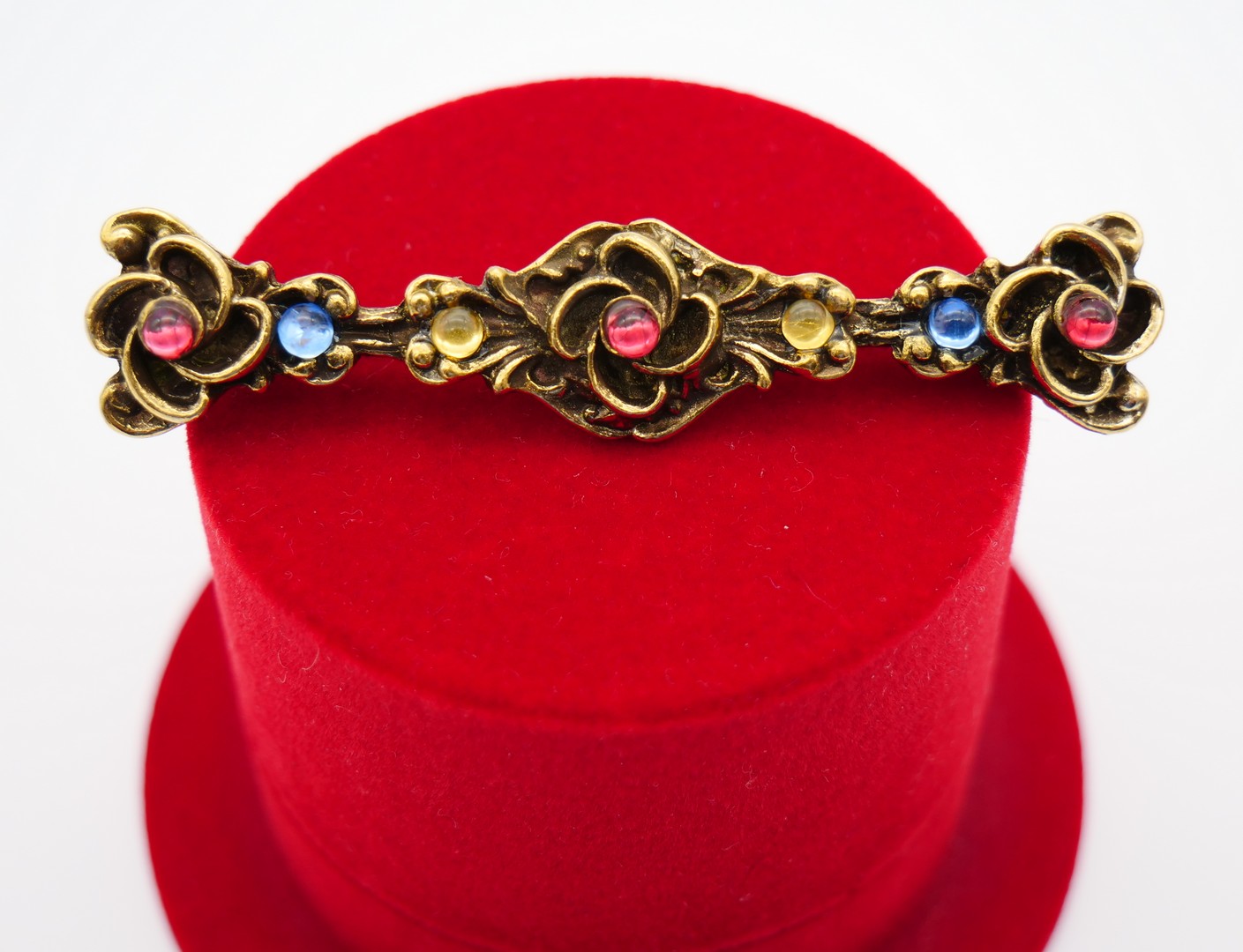 AMSEL is known for their gold-filled bridge and costume jewelry. They also dabbled in rhinestones on occasion, those designs usually very sweet and petite, art deco looking pieces similar to Phyllis designs. The gold-filled pieces often in a Victorian revival style.
