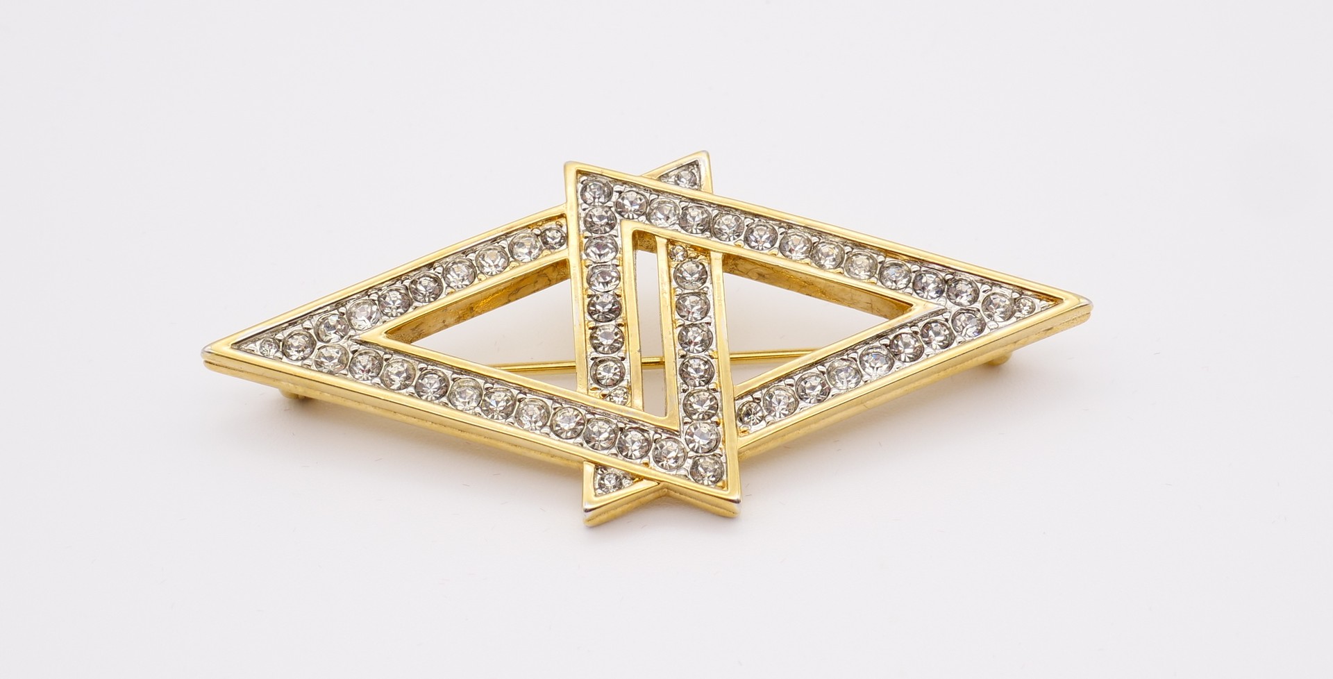 Vintage 22K triple Gold Plated brooch pin. Abstract Modernist Design, Shiny Gold Plated with Austrian Crystals. Signed H-A © Vendome. In excellent condition.