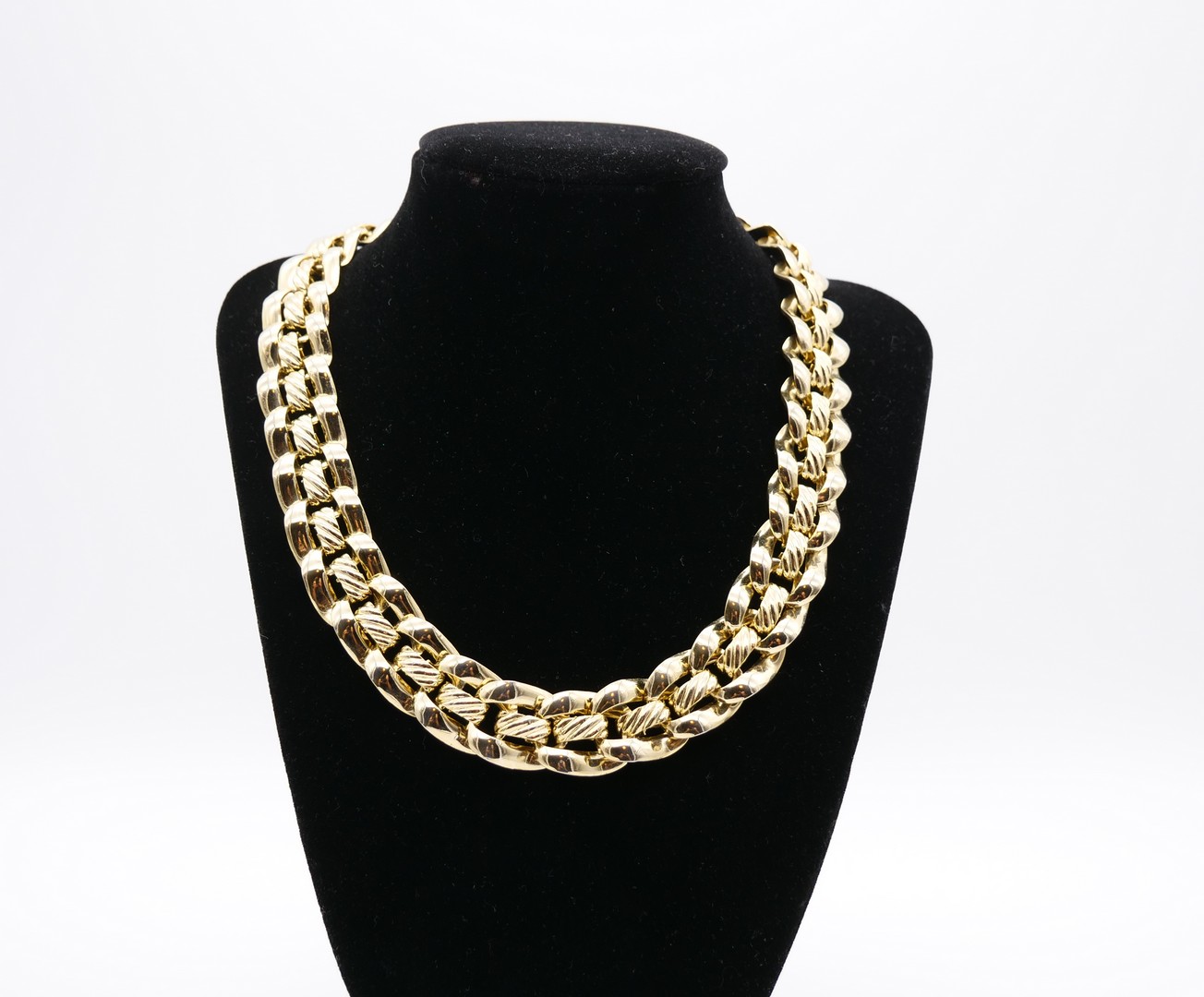 A beautiful shiny gold plated choker necklace. This vintage wide necklace has high polished wavy chain links. Unsigned. In great condition. Vintage 1980s.