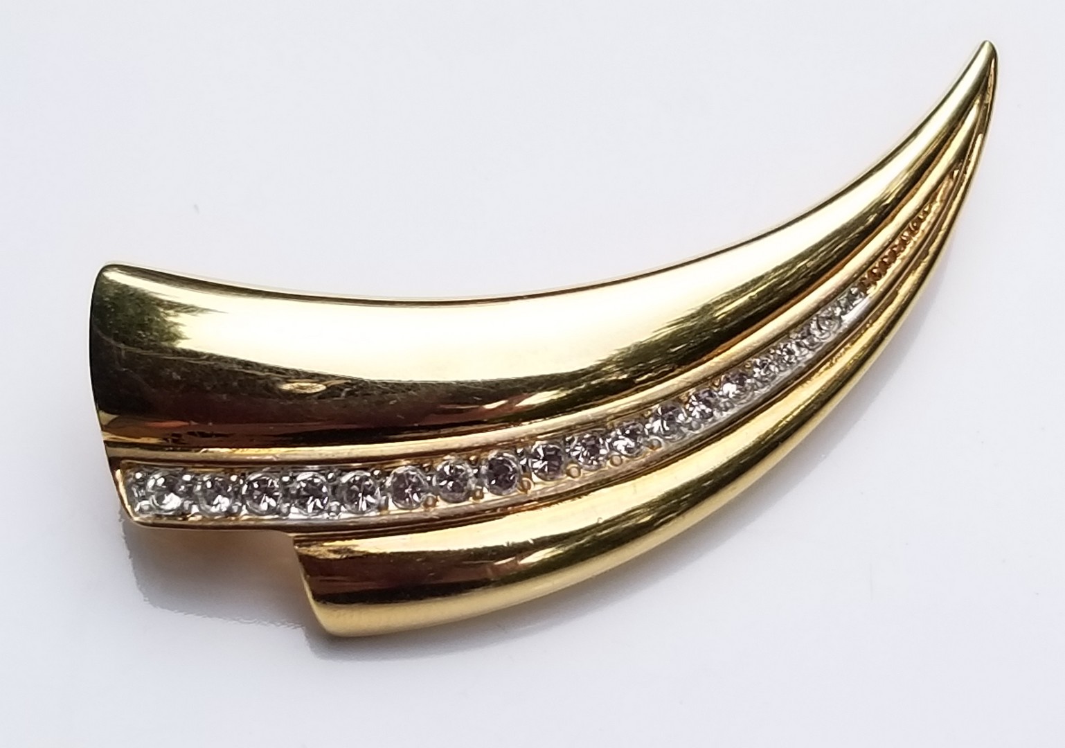 Vintage 22K triple Gold Plated brooch pin. Abstract Modernist Design, Shiny Gold Plated with Austrian Crystals. Signed H-A © Vendome. In excellent condition.